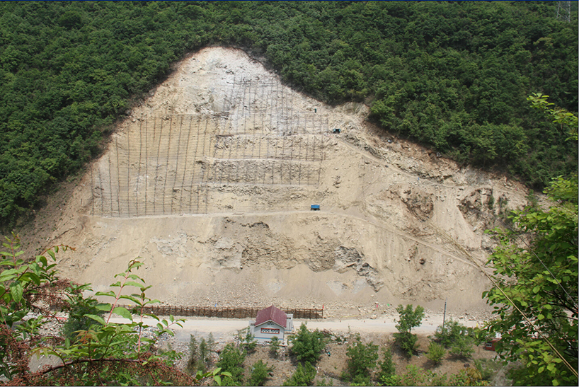 G108洋縣土地嶺段K1520+300右側(cè)山體滑坡,工程區(qū)東西長80m、高程范圍1040m-1120m、高差80m。