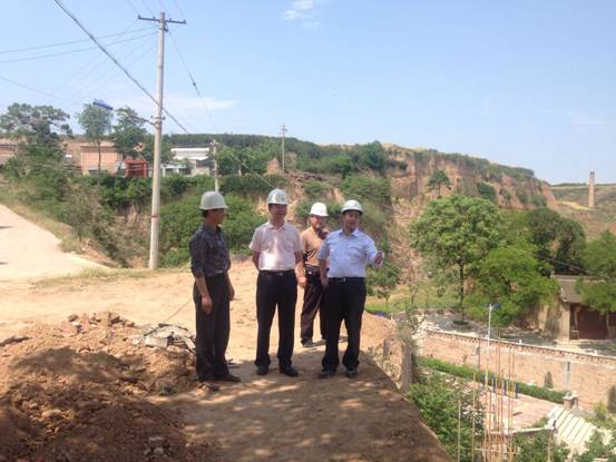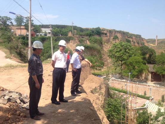 2017年5月18日,公司總經(jīng)理石劍、黨總支書記王振福與寶雞工勘院院長徐永利、副院長劉海龍一起對(duì)公司與寶雞支隊(duì)共同承擔(dān)的“2016年寶雞市鳳翔縣陳村鎮(zhèn)水溝村郭剛家崩塌治理工程”進(jìn)行現(xiàn)場(chǎng)檢查。石劍總經(jīng)理現(xiàn)場(chǎng)對(duì)工程情況進(jìn)行了解,對(duì)施工安全、施工質(zhì)量提出了要求,對(duì)加快施工進(jìn)度和處理好工程所在地村民關(guān)系進(jìn)行了強(qiáng)調(diào)。王振福書記對(duì)工程刷坡、漿砌石擋墻及窯洞回填施工工藝進(jìn)行了現(xiàn)場(chǎng)指導(dǎo)。