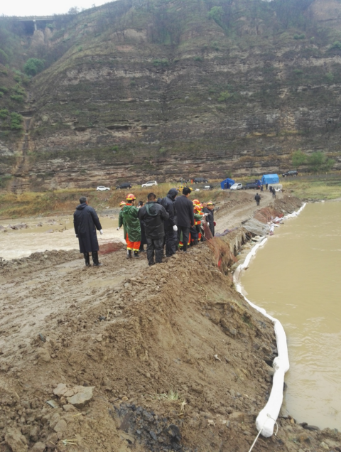 本次應(yīng)急救援工作參與者是由應(yīng)急救援隊(duì)辦公室、渭南支隊(duì)、咸陽(yáng)支隊(duì)、環(huán)境檢測(cè)支隊(duì)和航測(cè)支隊(duì)共38名應(yīng)急搶險(xiǎn)救援隊(duì)員組成。按照現(xiàn)場(chǎng)應(yīng)急指揮部安排部署,應(yīng)急救援隊(duì)冒著風(fēng)雨隨即全力投入到搶險(xiǎn)救援工作中。4月12日14時(shí)至4月13日22時(shí),應(yīng)急救援隊(duì)先后對(duì)長(zhǎng)武縣焦家灣斷面,棗渠水電站斷面和彬縣豳風(fēng)橋斷面進(jìn)行架設(shè)吸油氈、吸油棉和安放吸附活性炭、水質(zhì)監(jiān)測(cè)取樣工作。4月14日上午8時(shí)30分,經(jīng)過(guò)陜西省突發(fā)環(huán)境事件應(yīng)急搶險(xiǎn)救援隊(duì)和地方救援隊(duì)伍連續(xù)冒雨奮戰(zhàn),通過(guò)一系列有效處置措施,水質(zhì)檢測(cè)結(jié)果達(dá)標(biāo),搶險(xiǎn)救援工作結(jié)束。