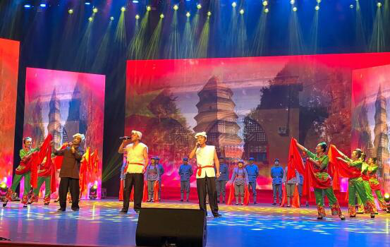 晚會(huì)在歌舞《我和我的祖國》中拉開帷幕。我公司參演的節(jié)目情景歌舞《山丹丹開花紅艷艷》,熱情謳歌革命先烈,緬懷革命先烈,表達(dá)出對革命先烈的敬仰之情,現(xiàn)場掌聲、喝彩聲不斷,氣氛十分熱烈。
