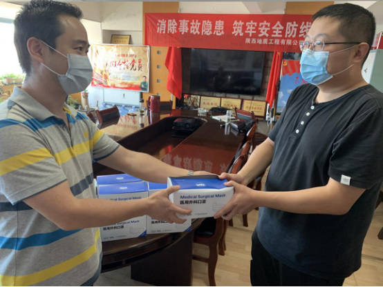 公司緊急采購了一批疫情防護用品,會后為職工統(tǒng)一放發(fā)。