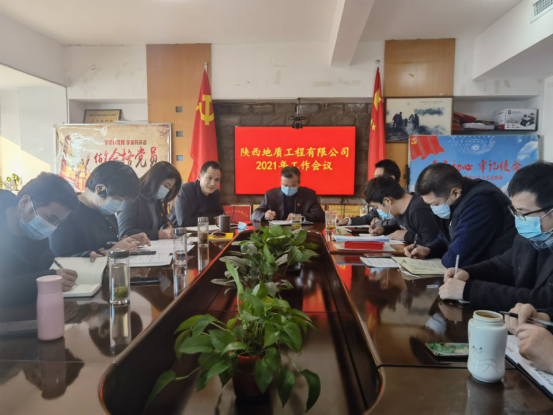 2021年2月8日,陜西地質(zhì)工程有限公司召開(kāi)2021年工作會(huì)議,副總經(jīng)理蘇偉主持,全體員工參加。