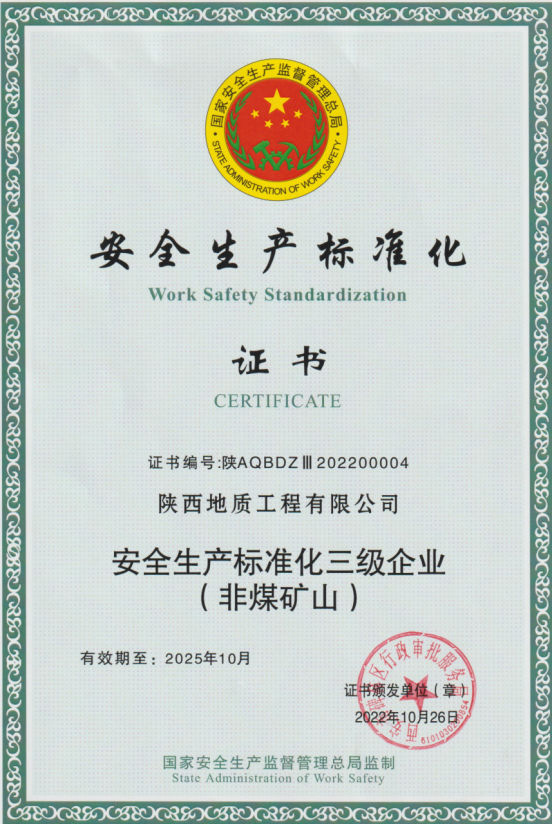 我公司非煤礦山安全生產標準化通過審核。