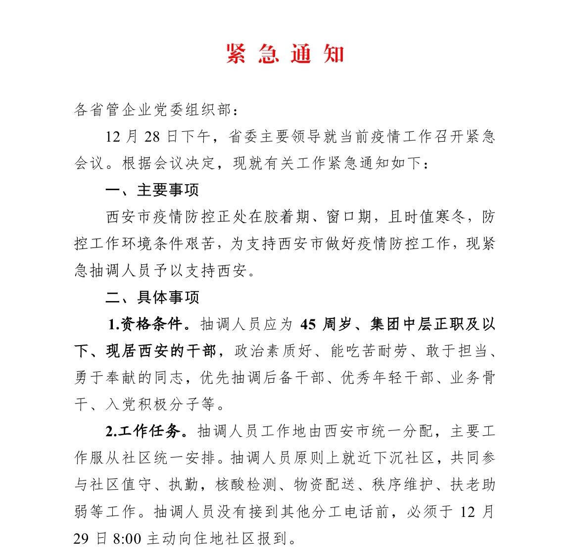 當(dāng)前 ,西安市新冠肺炎疫情防控正處在膠著期、窗口期,疫情形勢十分嚴(yán)峻,防控工作牽動著每個人的心。12月28日晚,在接到集團公司抽調(diào)人員支持西安市防控工作的緊急通知后,陜西地質(zhì)工程有限公司高度重視、迅速行動, 緊急調(diào)動黨員干部積極報名。最后由劉剛、王元星兩名黨員同志承擔(dān)第一批支援西安市疫情防控工作的重任。